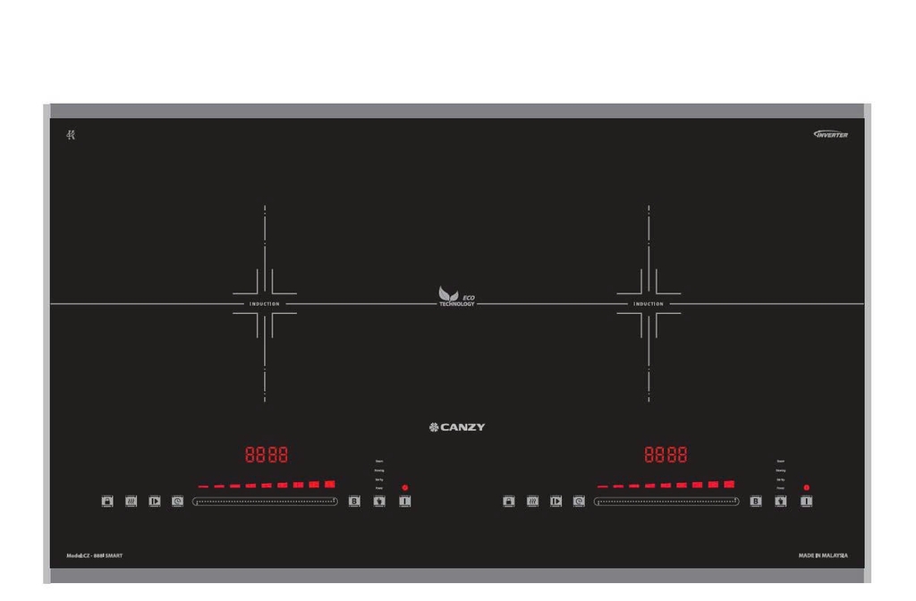 Bếp Từ Đôi Canzy CZ 888i Smart – trang bị công nghệ Inverter giúp tiết kiệm đến 40% điện năng và Công nghệ EcoGreen khử từ trực tiếp