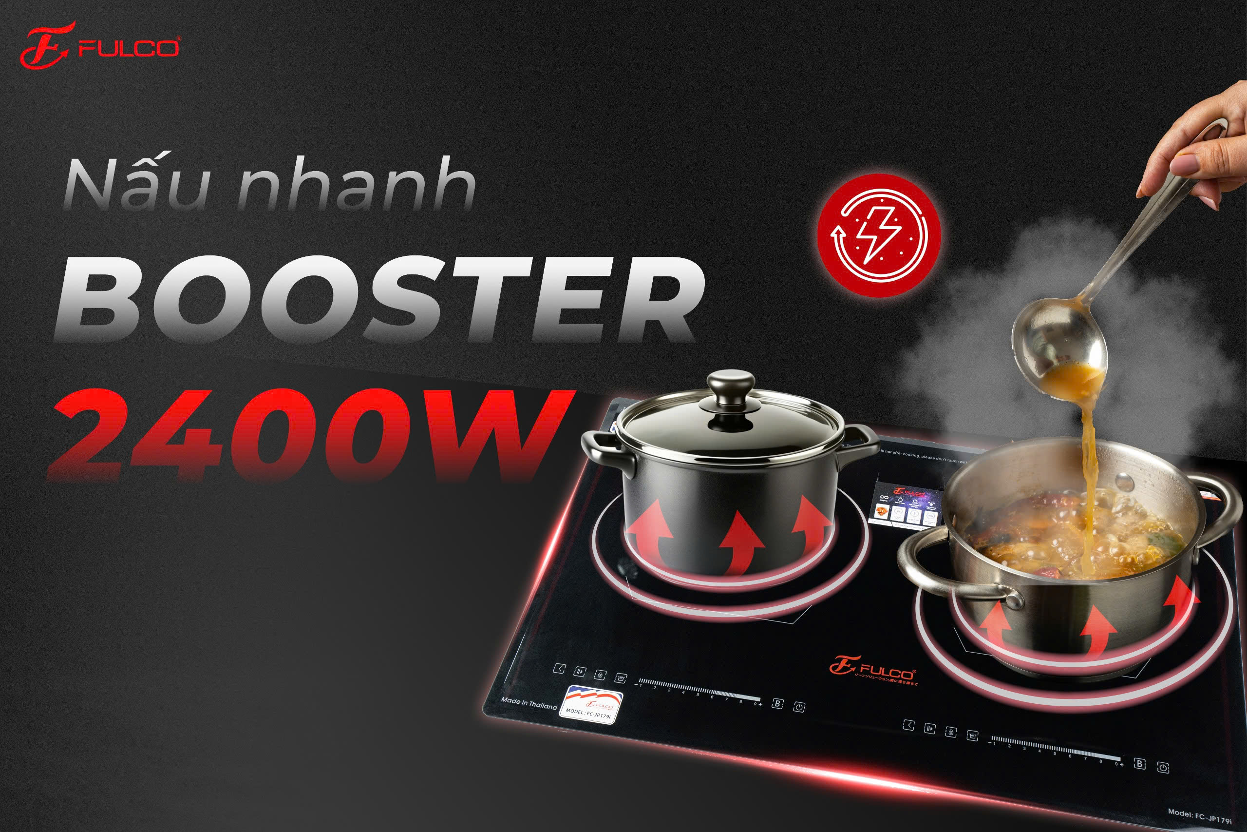 Bếp từ đôi Fulco FC-JP179i hỗ trợ 9 mức công suất nhiệt cho mỗi vùng nấu. Tính năng Booster giúp tăng nhanh nhiệt độ trong thời gian ngắn, phù hợp khi cần đun sôi gấp hoặc chế biến món ăn yêu cầu nhiệt độ cao.
