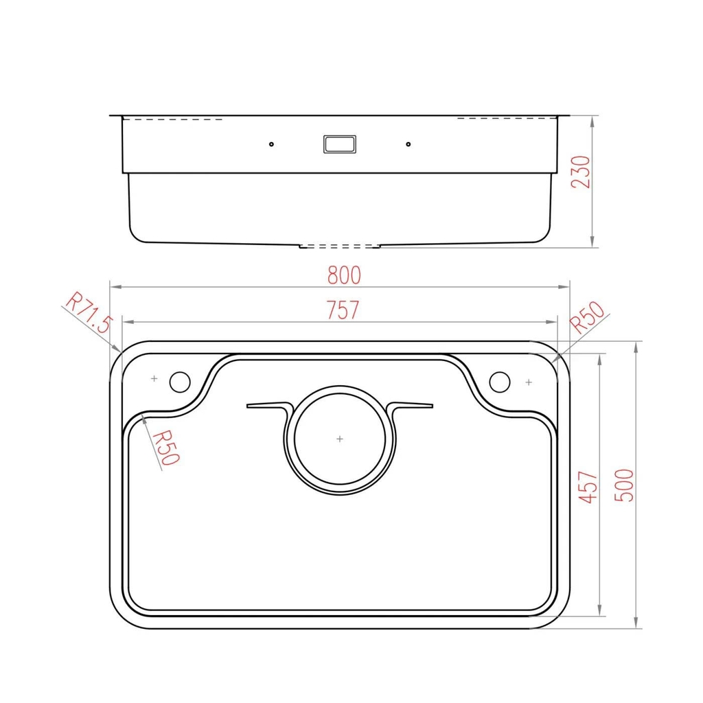 Kích thước cắt đá âm: 757 x 457 mm, R50