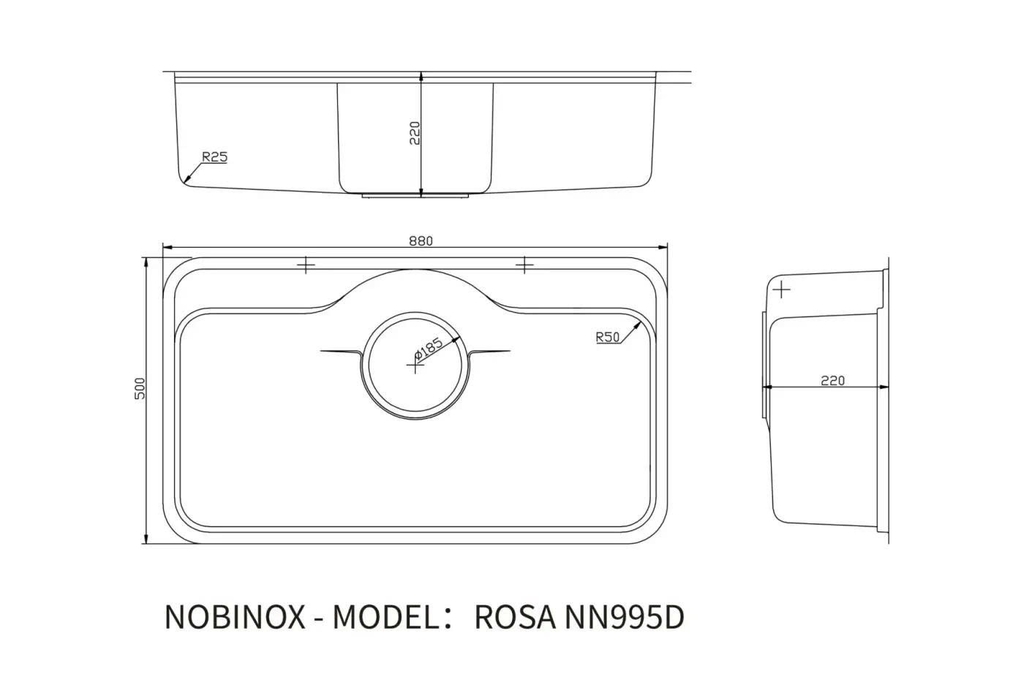 ROSA NN995D sở hữu kích thước tổng thể 880 x 500 x 220 mm, mang đến không gian rửa rộng rãi, phù hợp với những căn bếp có diện tích trung bình đến lớn. Lòng chậu sâu 22 cm giúp hạn chế bắn nước ra ngoài, giữ khu vực bếp luôn khô ráo và sạch sẽ.