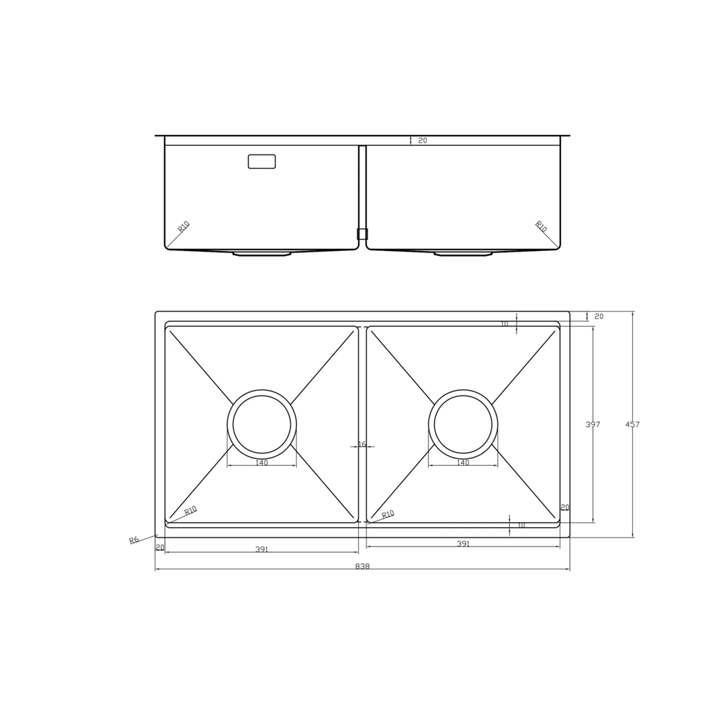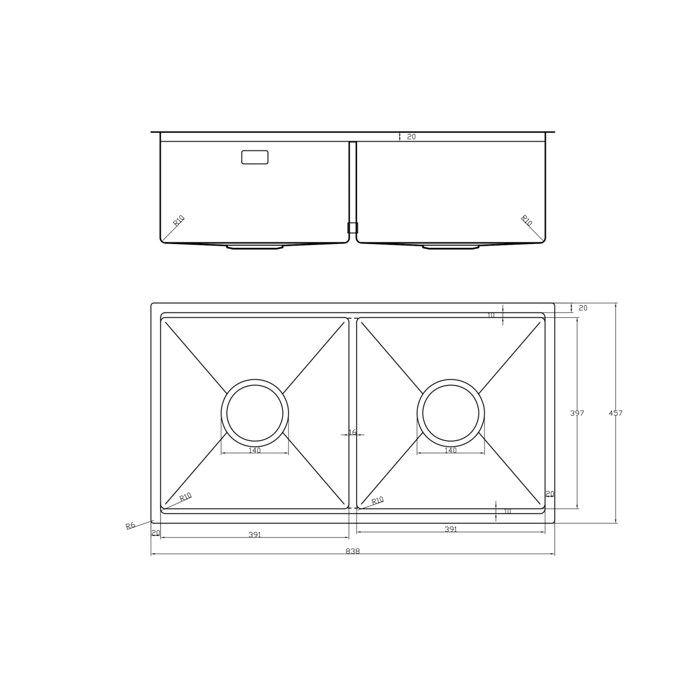 CHẬU RỬA BÁT 2 HỐ NOBINOX LUMIA NJ524 được thiết kế để lắp âm mặt đá với kích thước cắt âm 797 x 417 mm.