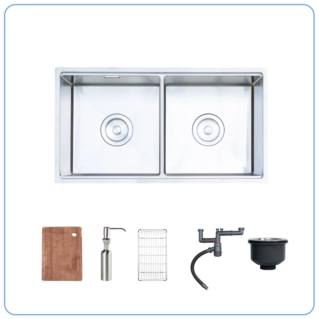 CHẬU RỬA BÁT 2 HỐ NOBINOX LUMIA NJ524 – INOX 304 POSCO, LẮP ÂM HIỆN ĐẠI, BẢO HÀNH 10 NĂM
