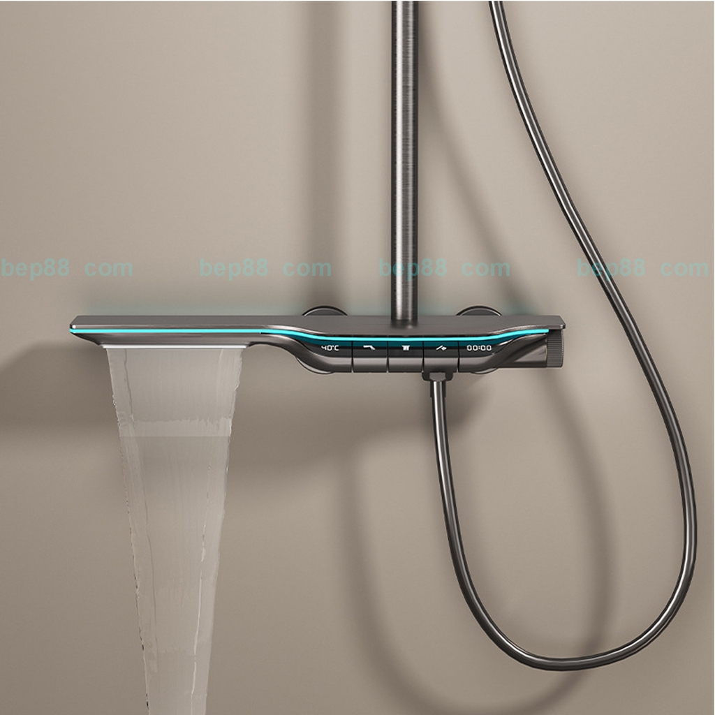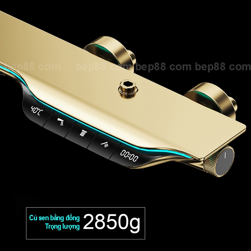 - Chất liệu: Đồng thau mạ titan mặt kính cường lực và hiển thị nhiệt độ, thời gian, đèn led dải trên thân củ sen tắm